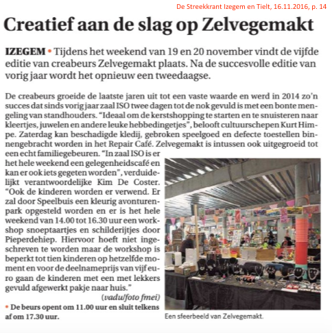 Bron: vadu/foto fmei, De Streekkrant Izegem en Tielt, 16.11.2016, p. 14