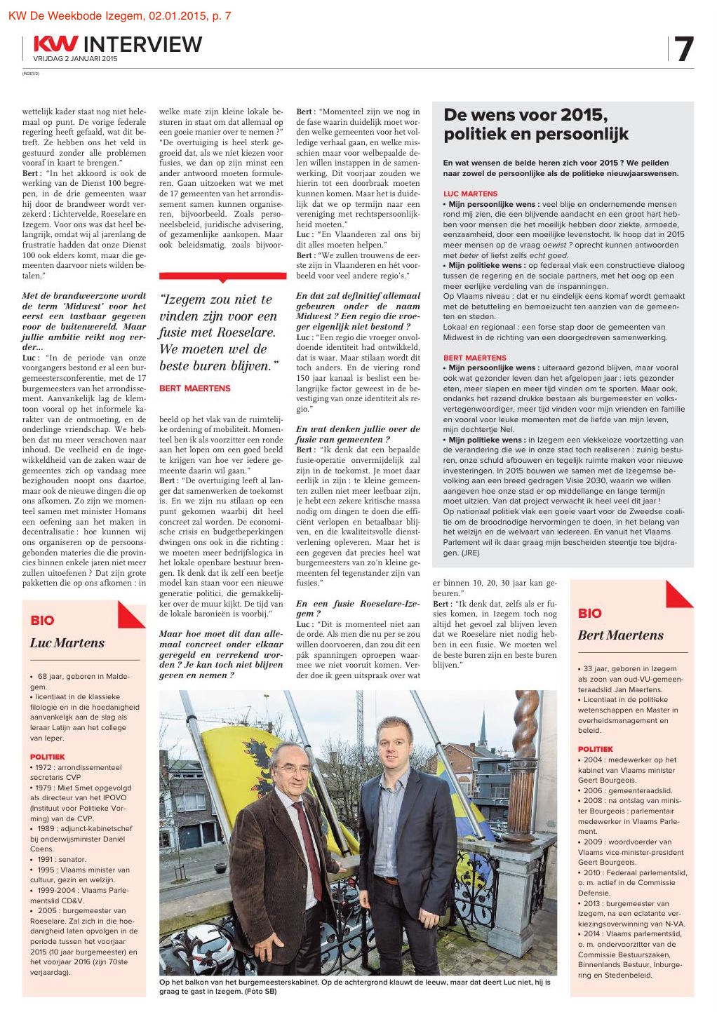 Bron: Jos Remaut, KW De Weekbode Izegem, 02.01.2015