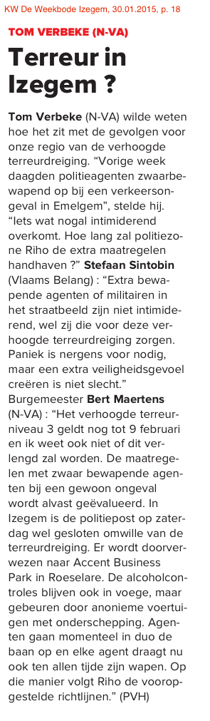 Bron: PVH, KW De Weekbode Izegem, 30.01.2015, p. 18
